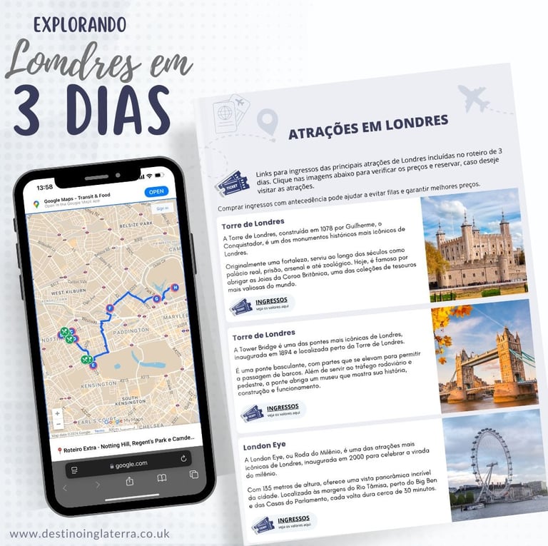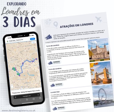 Não perca tempo tentando organizar tudo sozinho! Com o nosso roteiro Explorando Londres em 3 dias, você vai direto ao que realmente importa: os pontos imperdíveis, os segredos locais, restaurantes, cafés e as melhores dicas para aproveitar cada minuto na cidade.